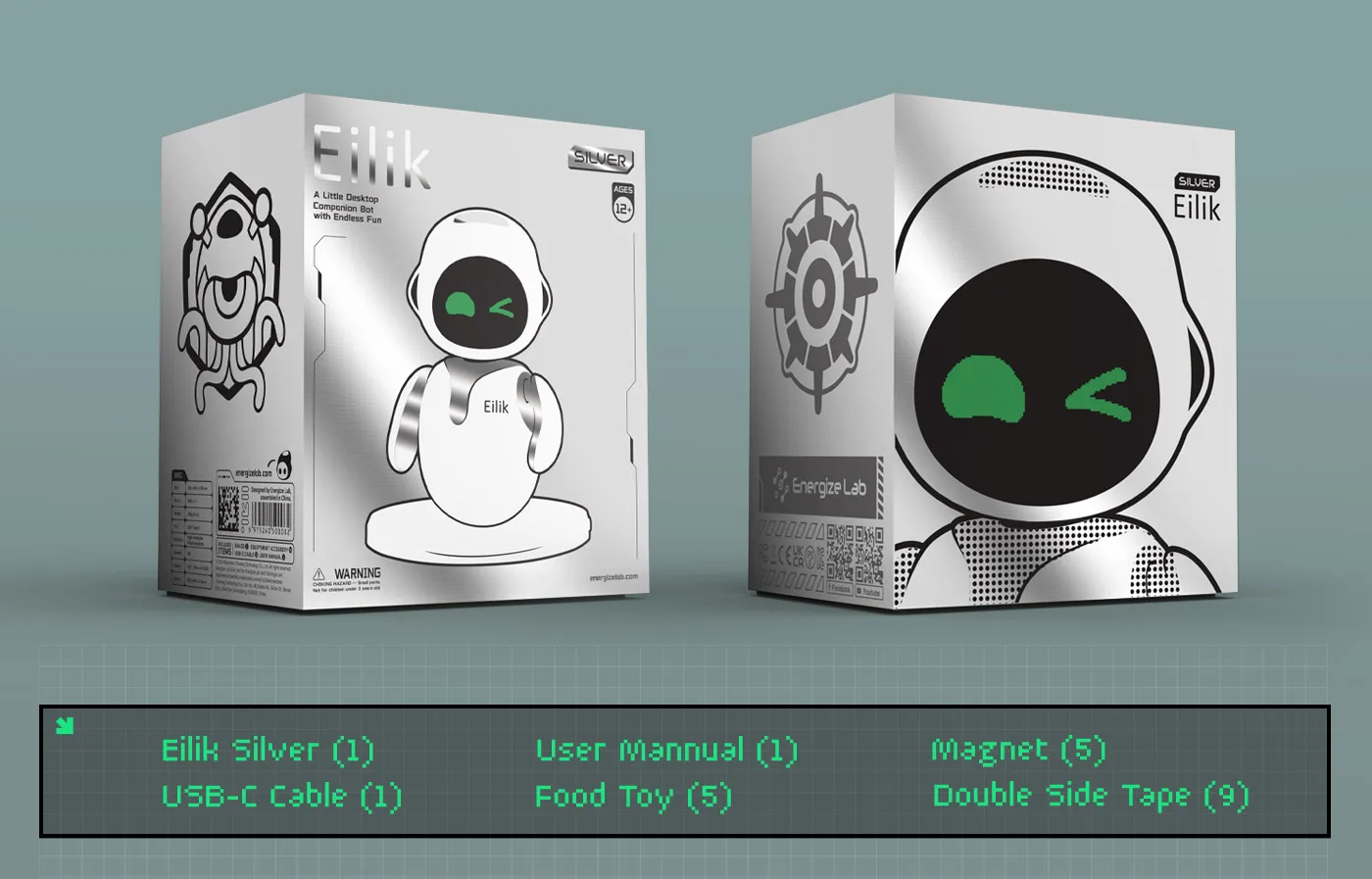 ATTENTION - Eilik does not support voice interaction and AI. The hardware used for the robot's joints is fully certified and compliant, though it may produce a certain level of noise during operation, which is a normal occurrence for robotic toys. To protect the robot's hardware, it will automatically power down after an extended period of inactivity.
