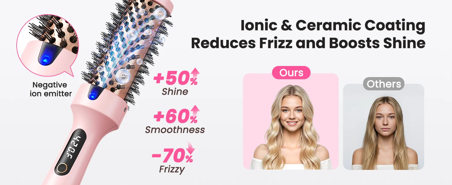 Thermobürste Blowout Boost, 1,5 Zoll beheizte Rundbürste für Blowout-Look, Dual-Voltage-Negativ-Ionen-Technologie 6-Temperaturmodus